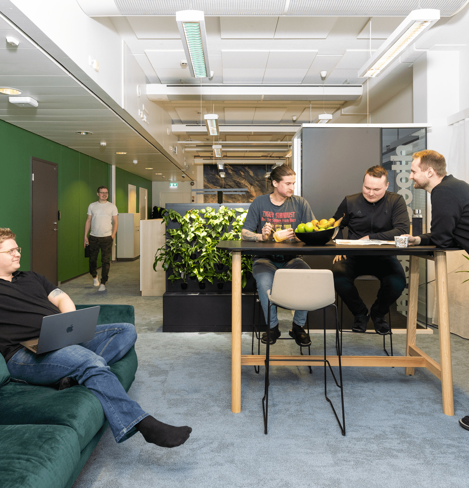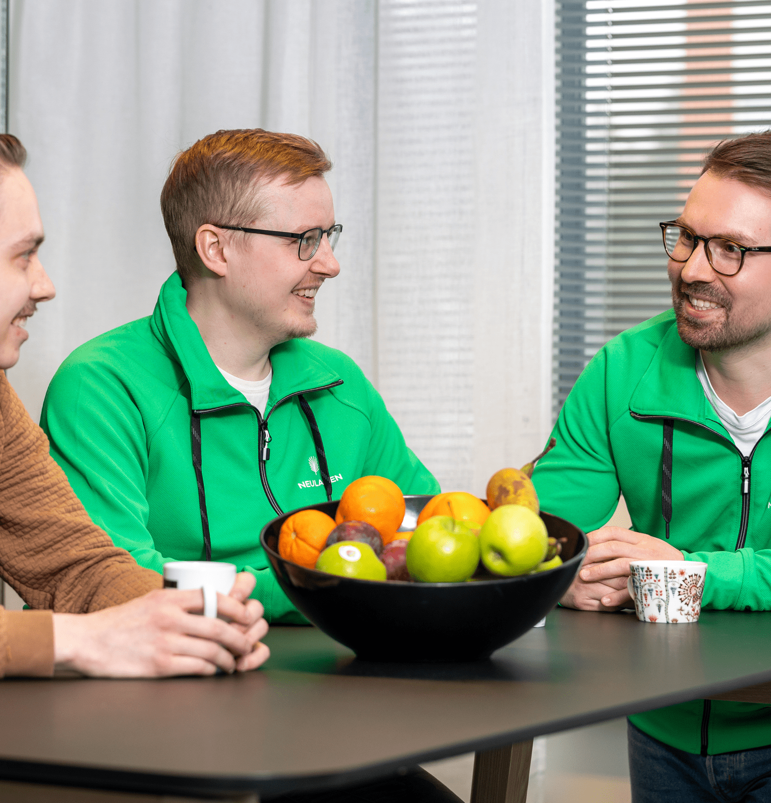Lounasetu ja ePassi (400 €/vuosi, flex) sekä Heltti-työterveys takaavat arkeen hyvän perustan – ePassin käytät itse valitsemiisi liikunta- tai kulttuuripalveluihin. Kahvit ja hedelmät kuuluvat joka päivään, ja kerran kuussa kokoonnumme yhteiselle aamupalalle.