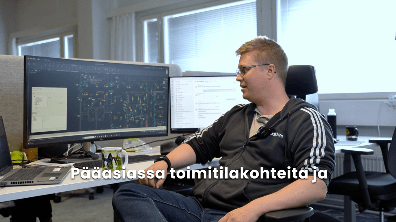 Oulun uudet, toimivat tilat tukevat työntekoa: säädettävät sähköpöydät, isot näytöt ja kunnolliset työvälineet takaavat mukavat puitteet suunnittelutyöhön. Arjessa joustamme aina tarpeen mukaan – käytössä on liukuva työaika, etäpäivät onnistuvat, ja halutessasi voit työskennellä myös 80 % tai 90 % työajalla. Polkupyöräetu tekee liikkumisesta sujuvaa.